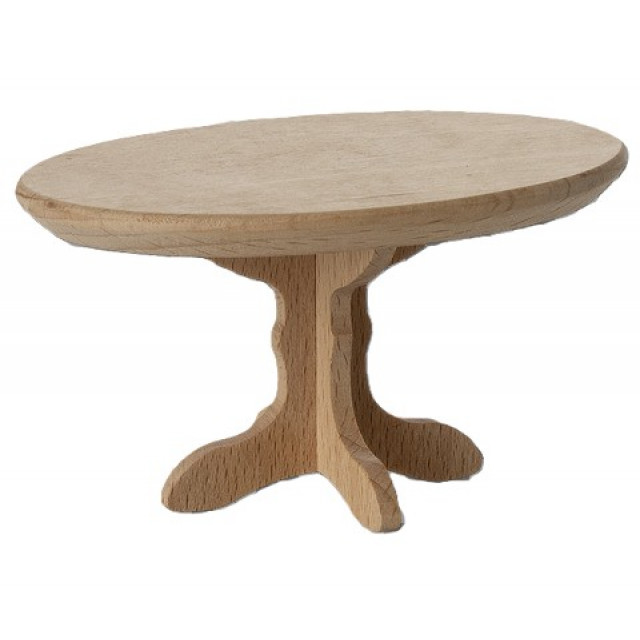 Ovalt soffbord av trä till dockhus av den lite större sorten som passar till tex Mailegs möss runt 9-17 cm